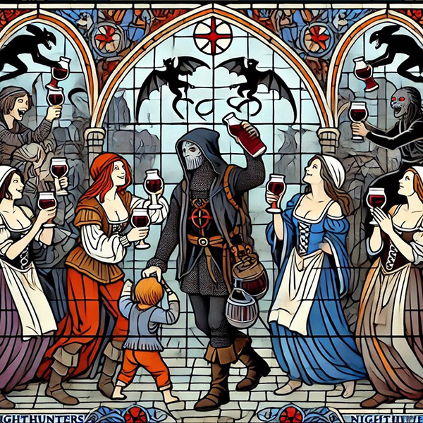 Centuries ago, fearless Nighthunters, weakened and near sleep, entered an abandoned castle and stumbled into a forgotten cellar filled with sealed, dust-covered bottles. On one of them glared the image of the most terrifying vampire they had ever seen. With no choice, they drank. Suddenly, an unknown power surged through their veins.